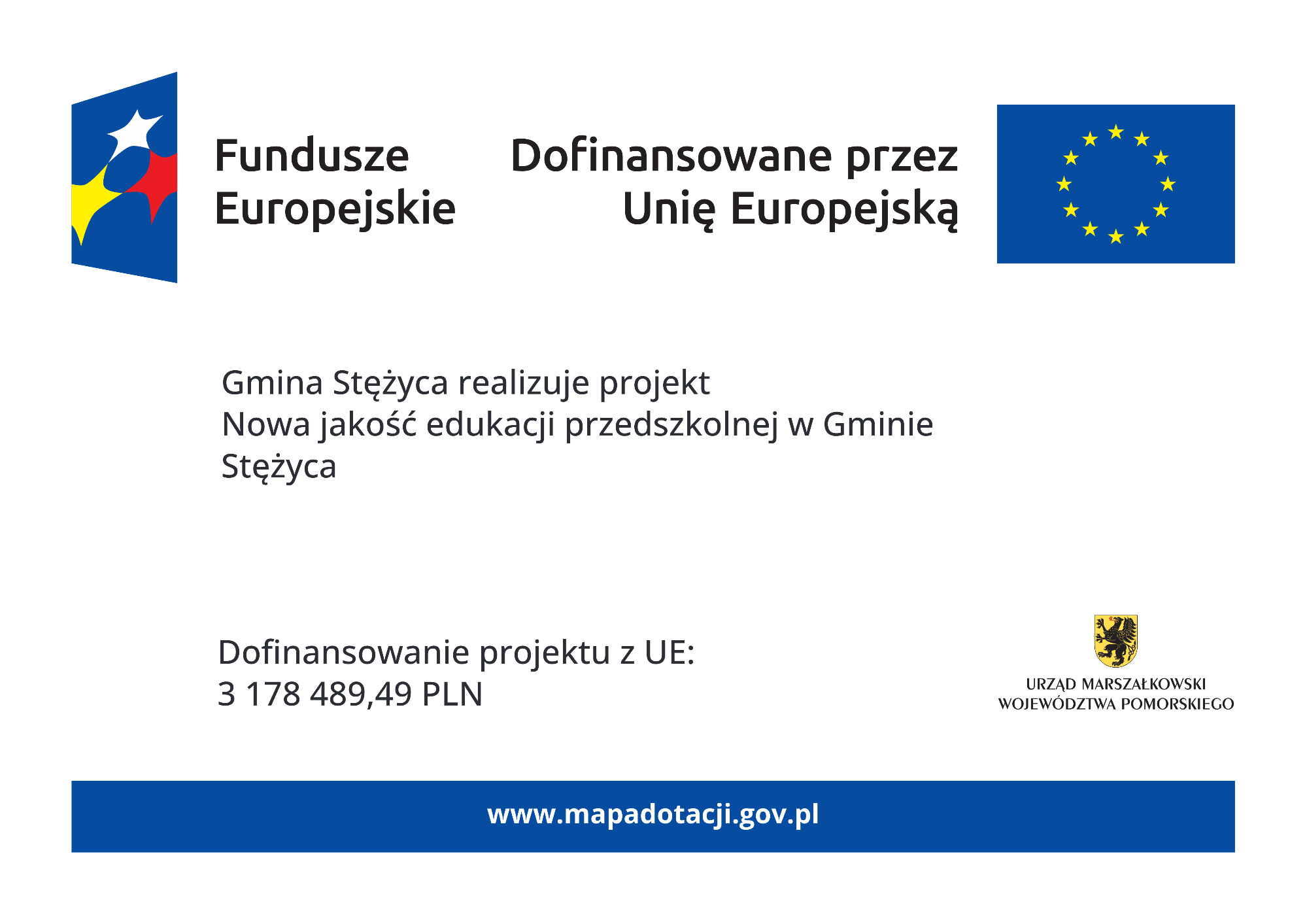 Gmina Stężyca uzyskała dofinansowanie z Unii Europejskiej na realizację projektu „Nowa jakość edukacji przedszkolnej w Gminie Stężyca”.